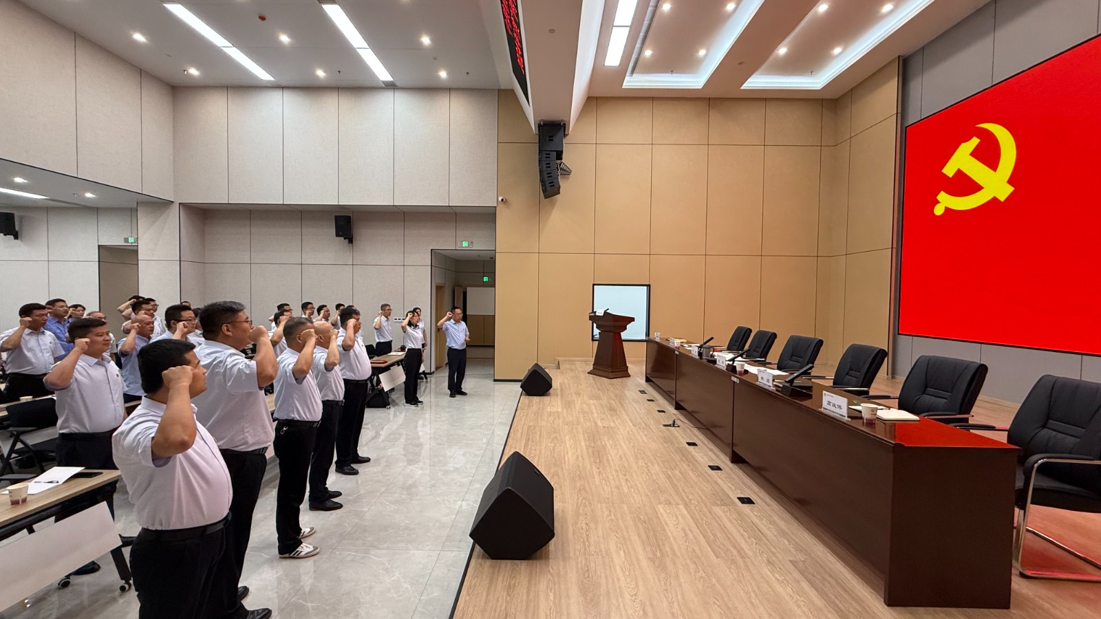 公司領(lǐng)導(dǎo)成員、中層干部、黨員、發(fā)展對象、入黨積極分子約50余人參加會議。
