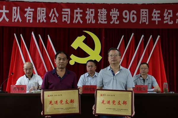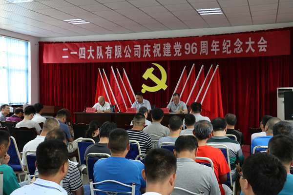 2017年6月30日上午,二一四大隊有限公司隆重召開慶祝建黨96周年紀念暨表彰黨內先進大會,公司領導、中層干部、全體黨員及入黨積極分子共60人參加了會議,會議由公司紀委書記、工會主席司金強同志主持。