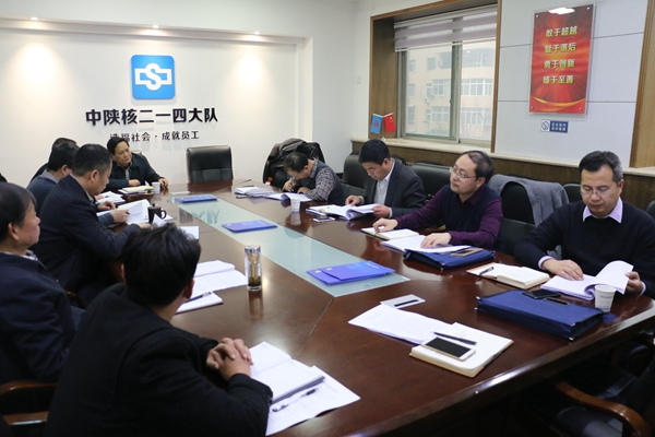 2017年1月5日下午,二一四大隊(duì)有限公司領(lǐng)導(dǎo)班子“兩學(xué)一做”學(xué)習(xí)教育專題民主生活會(huì)以“從嚴(yán)真學(xué)實(shí)做、全面追趕超越”為主題在西安總部三樓會(huì)議室舉行。中陜核工業(yè)集團(tuán)公司副總經(jīng)理孔維國(guó)、黨委工作部部長(zhǎng)張昆峰、第二巡查督導(dǎo)組組長(zhǎng)鄭建國(guó)和紀(jì)檢監(jiān)察部副部長(zhǎng)鄒海峰到會(huì)指導(dǎo)。