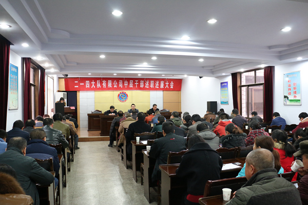 為進一步加強中層干部隊伍建設,客觀評價干部的實績,激勵和督促干部不斷提高工作水平和綜合素質,1月8日上午,公司在城固召開了2015年度全體中層干部述職述廉及民主測評大會,公司全體班子成員、中層干部、機關工作人員和各經營單位在隊人員70余人參加了大會,會議由紀委書記、工會主席楊乃讓主持,公司總經理田社生、黨委書記李新平在會上作了重要講話。