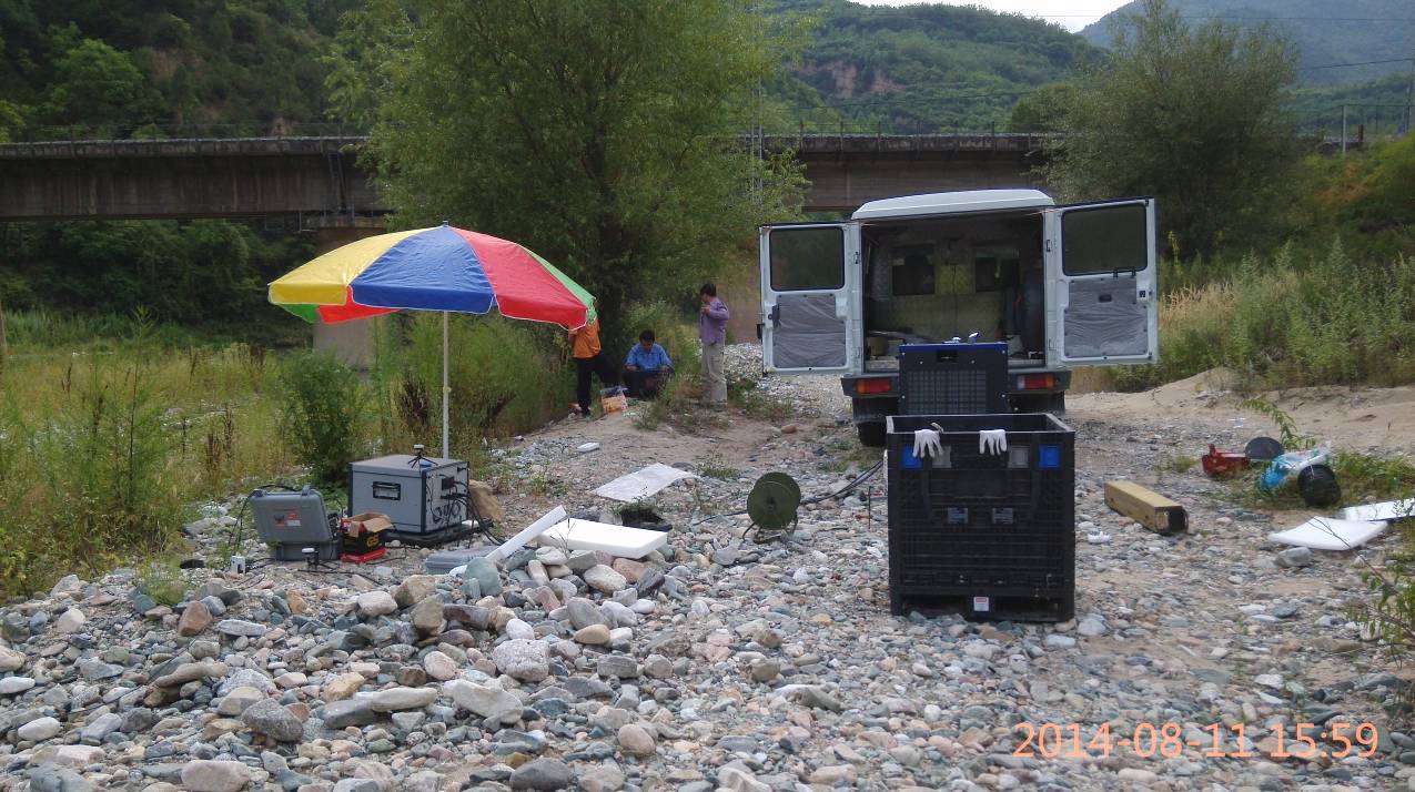 V8多功能電法儀是根據214大隊地質勘查找礦需要花巨資購買的先進物探設備,集團公司、大隊都對V8電法儀在地質勘查找礦中的作用寄于厚望,對于陜西鳳縣龐家河深部及外圍地區可控源音頻大地電磁(CSAMT)勘探工作,是V8電法儀在地質勘查找礦工作中的第一仗,是關系到增強信心和樹立良好形象之戰,項目組全體人員深感肩上責任重大。項目組就是一個大家庭,大家分工合作,各司其職,項目負責陳銘,工作認真積極,是整個團隊的靈魂,負責整個項目的組織實施及協調工作;技術負責干博、劉滄是今年剛參加工作的研究生,負責野外V8儀器測量數據采集接收,對于野外工作中遇到的問題,善于積極思考,勤于動手,問題總能得到及時解決;敖第堂負責測線布設開路,每天回來,手臂和臉上總有被荊棘掛破的傷痕,可他卻笑哈哈的說,沒事;司機杜師傅和呂師傅不僅每天接送我們,還兼做很多生活上的雜事。每天晚上吃過晚飯后,大家又開始了數據提取及初步處理、資料整理、技術討論、第二天工作安排準備。