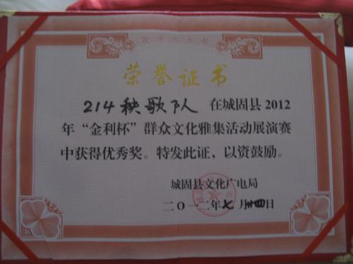 7月24日,大隊(duì)社區(qū)秧歌表演隊(duì)在參加城固縣2012年“金利杯”群眾文化雅集活動(dòng)展演賽中獲優(yōu)秀獎(jiǎng)。