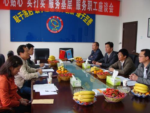大隊長、黨委書記羅芳哲向王明考一行介紹了大隊目前的經營狀況,大家還共同就當前大隊改制中遇到的困難進行了深入探討。